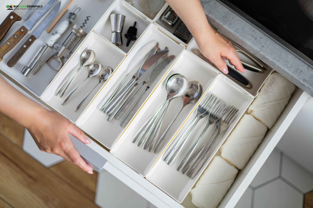 - Use adjustable dividers, trays, or utensil organizers to separate items. For easy access, store frequently used utensils at the front.