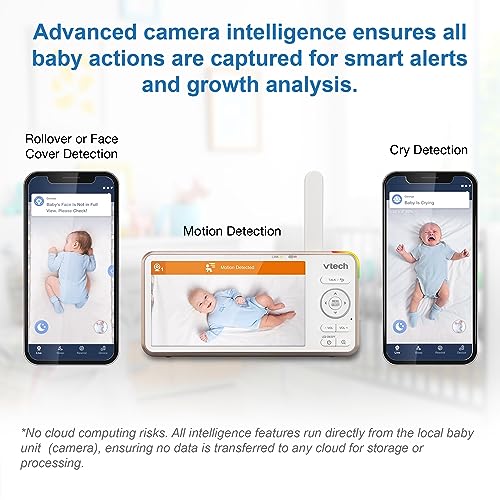 VTech V-Care 1080p FHD Over-The-Crib WiFi Smart Baby Monitor with 5″ 720p HD LCD Screen. Remote Access, Intelligence Built-in, Sleep Analysis, Rollover & Face Cover Detection, 18 hrs. Recording