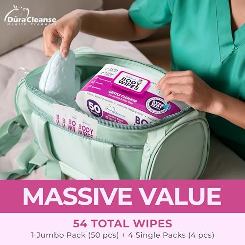 Travel-Friendly Pack: Our soft shell packaging has a tight resealable closure that ensures maximum moisture retention. Its simple peel-off cover allows quick and easy access to the wipes while on the go. You get 50 large wet wipes with free 4 individually packed travel-size bath wipes. Perfect as elderly care must haves, incontinence wipes, bedridden patient products, post op shoulder, breast or ankle surgery recovery supplies, and shower alternative adult cleaning wipes.